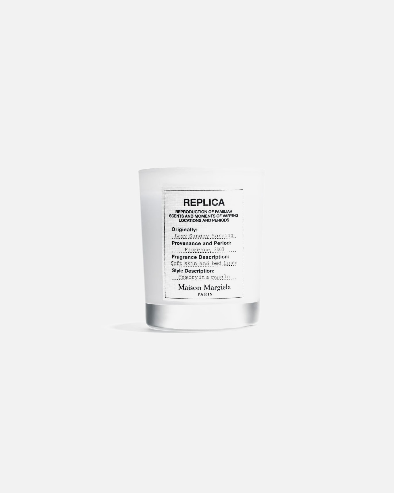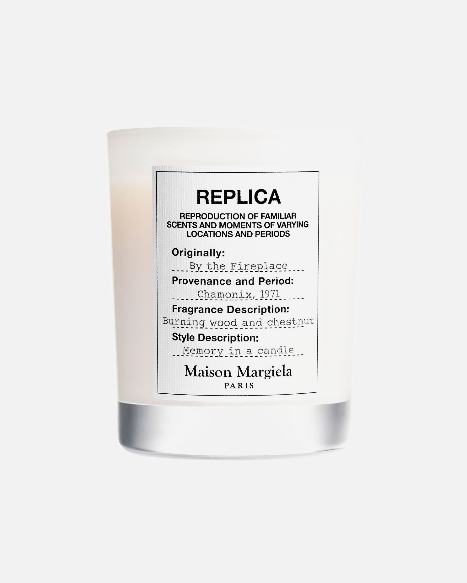 Martin Margiela belga tervező – mielőtt 1988-ban megalapította saját divat és parfümházát - három évig Jean Paul Gaultier asszisztenseként dolgozott, emellett 1998 és 2003 között a Hermés női ruhakollekciójának kreatív igazgatója is volt. Mindig közel állt hozzá a kissé provokatív, néha a határokat feszegető, de a pillanatra koncentráló szemlélet. Éppen ez a kettősség vezette el odáig, hogy 2012-ben megjelenjen az első (Replica) nevű Maison Margiela parfüm, melyek megalkotásában a legjobb parfümőrök is részt vettek. Így vált a Replica parfüm egy ikonikus, kihagyhatatlan illattá.