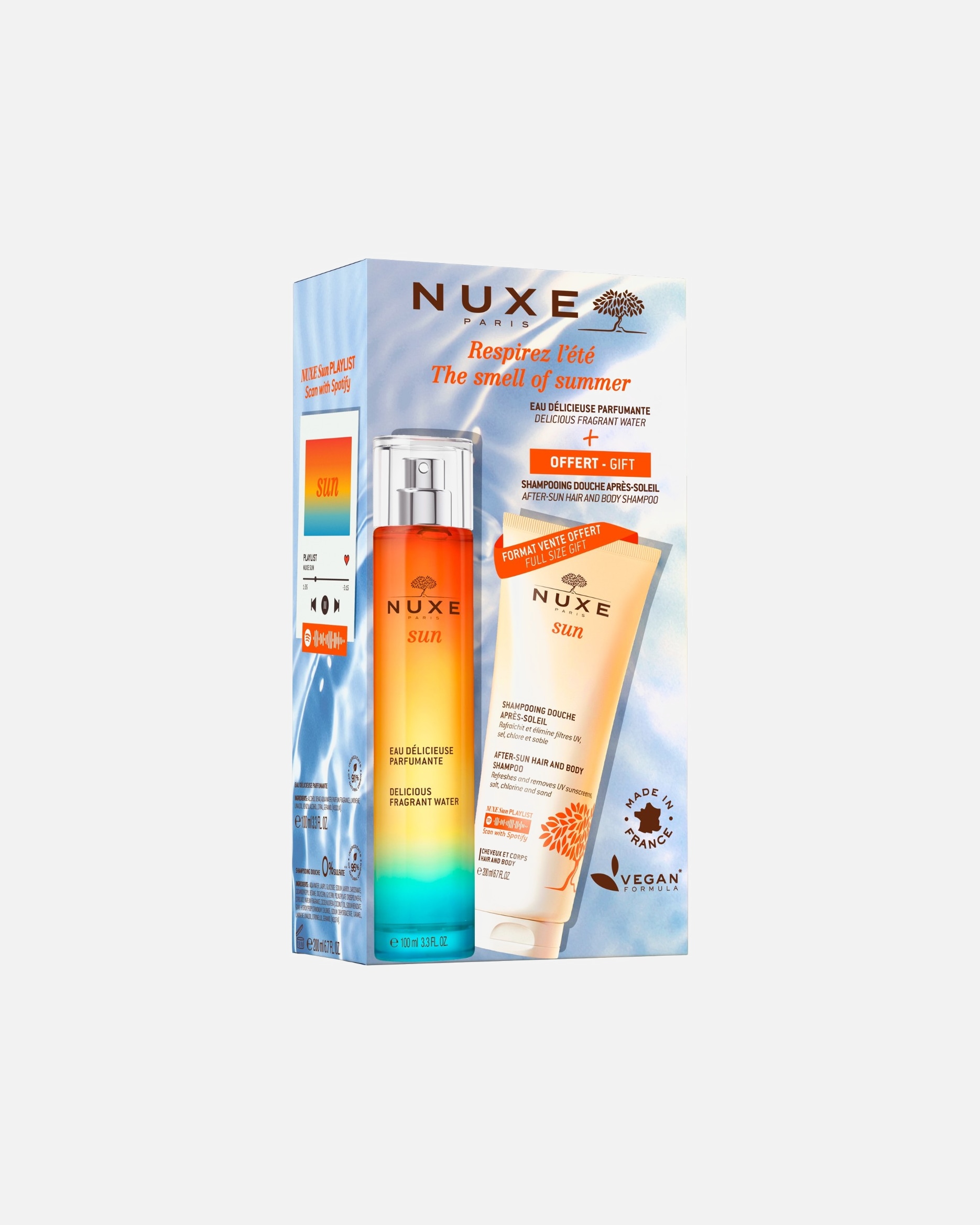 - Testápolás – a NUXE tusfürdők friss és tiszta érzést kölcsönöznek a bőrnek, míg a gyengéd testolaj kellemesen puhítja és hidratálja a bőrt fürdés után.
